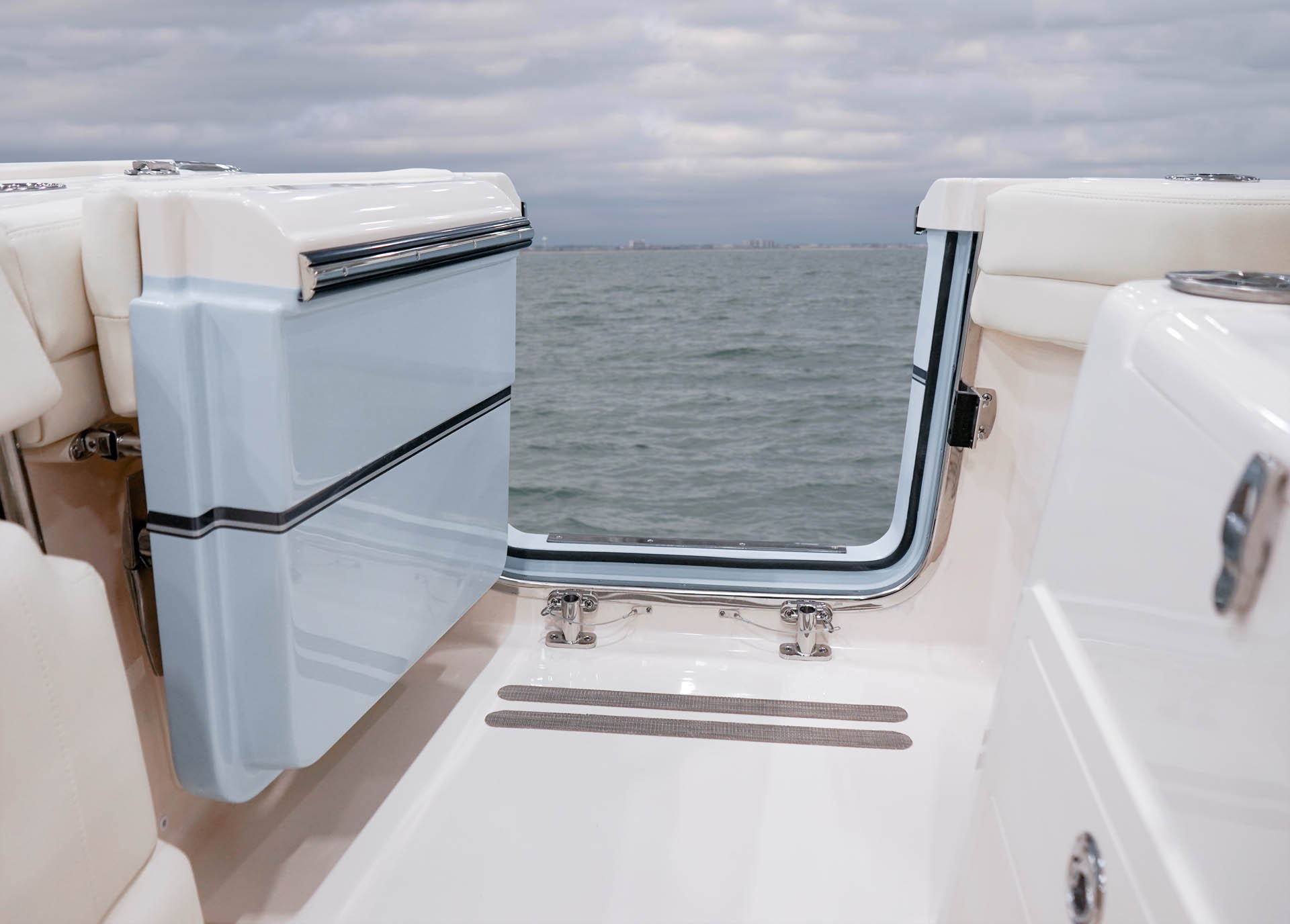 The Canyon 271 features a port side cockpit door for easy boarding and a deluxe lean bar with integrated rigging station, making it a serious fishing machine. The 42-gallon raw water livewell ensures your catch stays fresh throughout your fishing adventure.