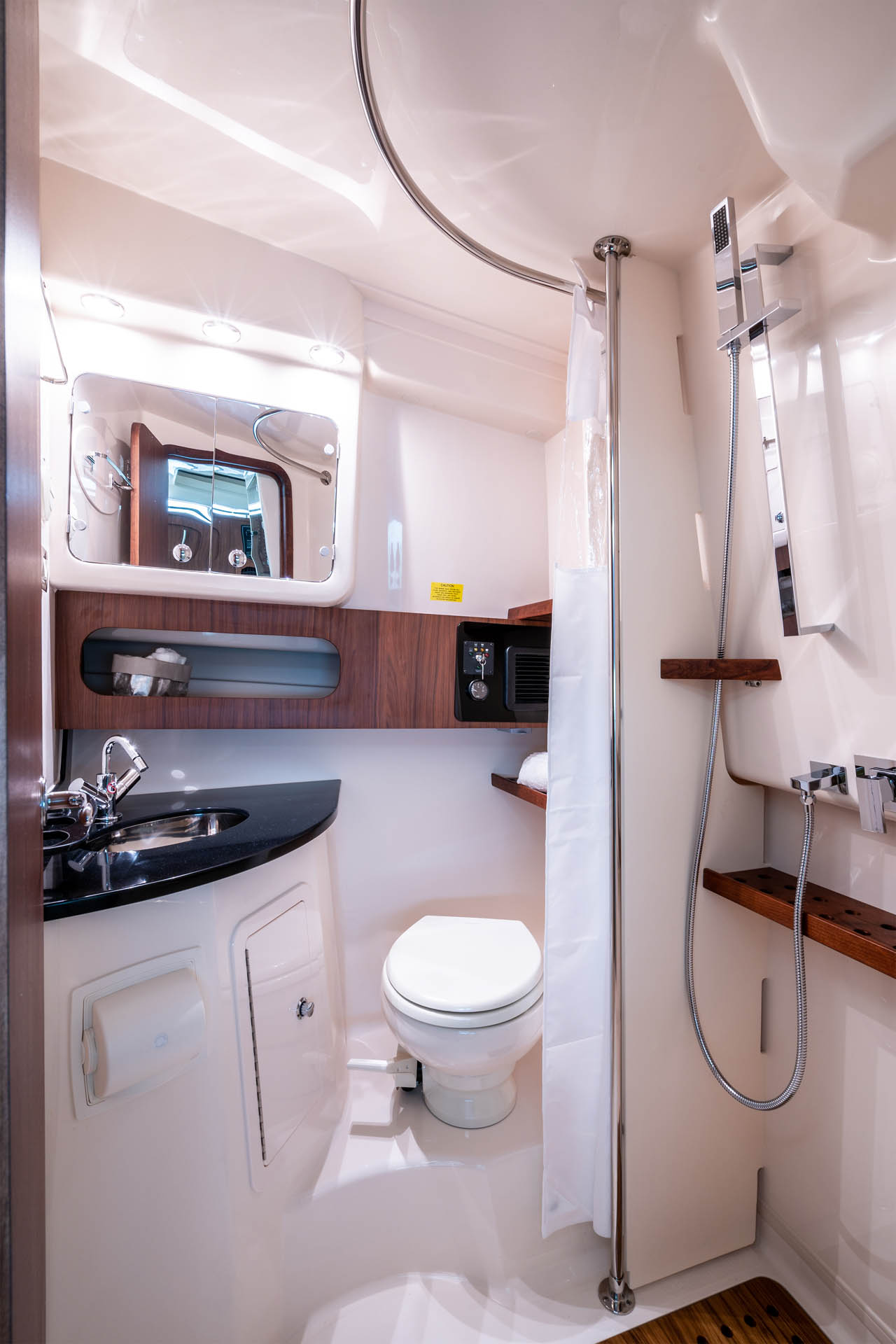 From the AV²® hardtop with electronically sliding sunroof, mass amounts of storage, the most comfortable seating options, and a grand cabin complete with galley to the convertible dinette area and enclosed head, no stone has been left unturned in the design of this boat.