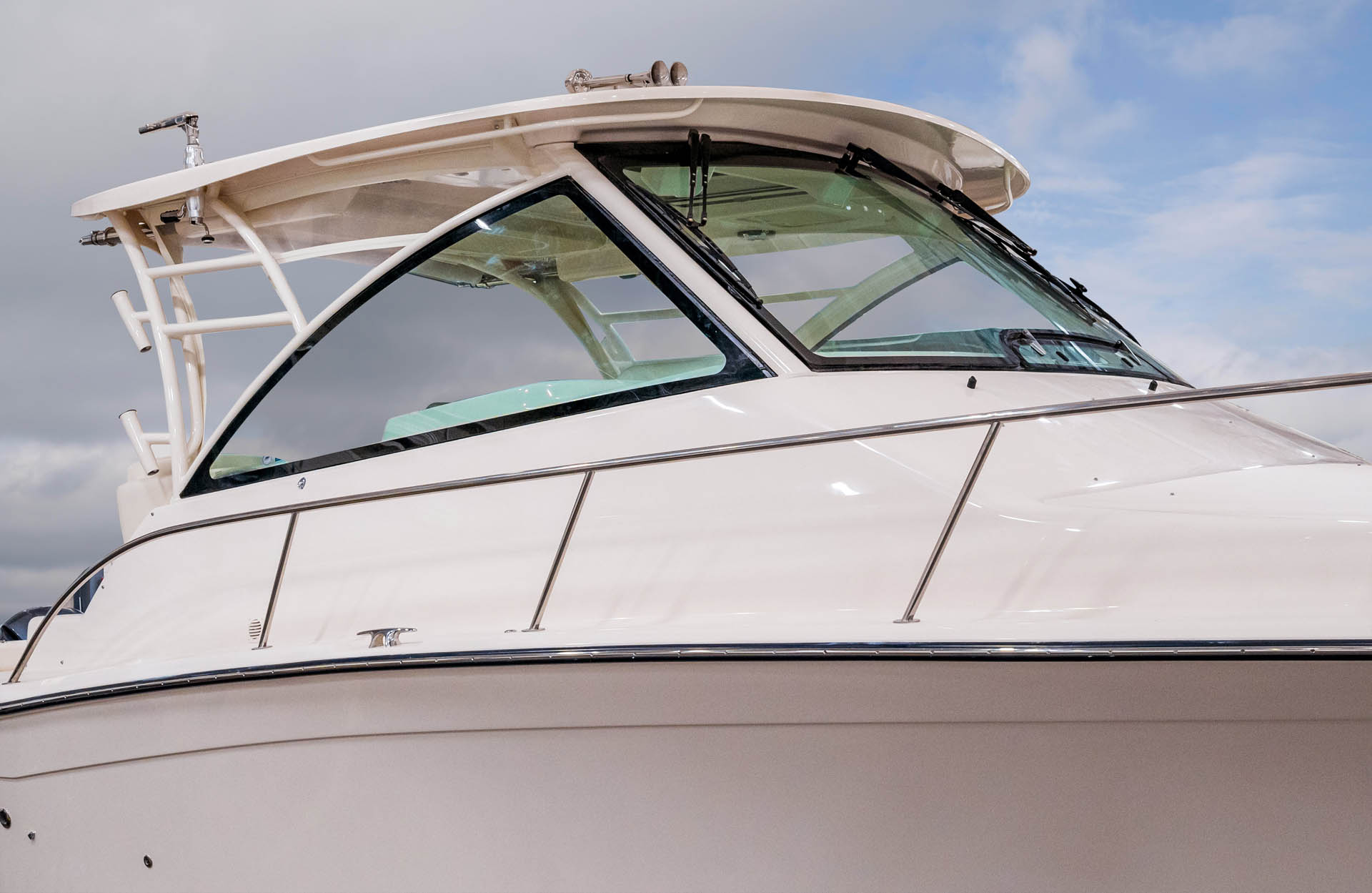With custom yacht qualities, the Express 370, a 37-foot express cabin boat, offers more exceptional details, ample cabin room, performance, and reliability than many inboard boats that are larger in length! From the AV²® hardtop with electronically sliding sunroof to the grand cabin complete with galley, this boat is a luxurious family cruiser that’s equally well-suited for offshore saltwater sportfishing.