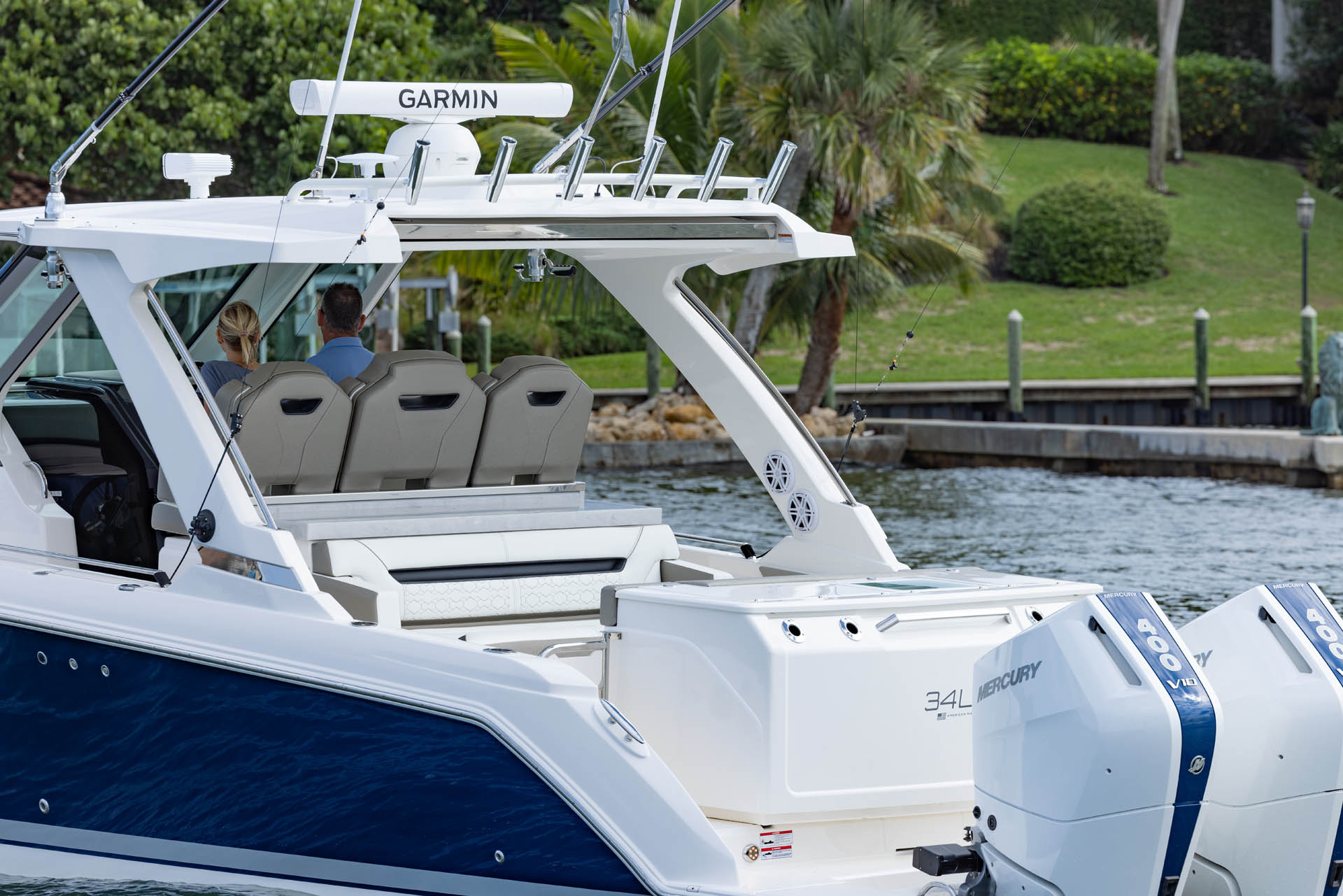 Paired with Mercury® propulsion, the 34 LS is ready to perform. Outfitted with glass cockpit integrated electronics and the latest Garmin® Marine navigation systems, captains will enjoy the ease of use and navigation aboard.