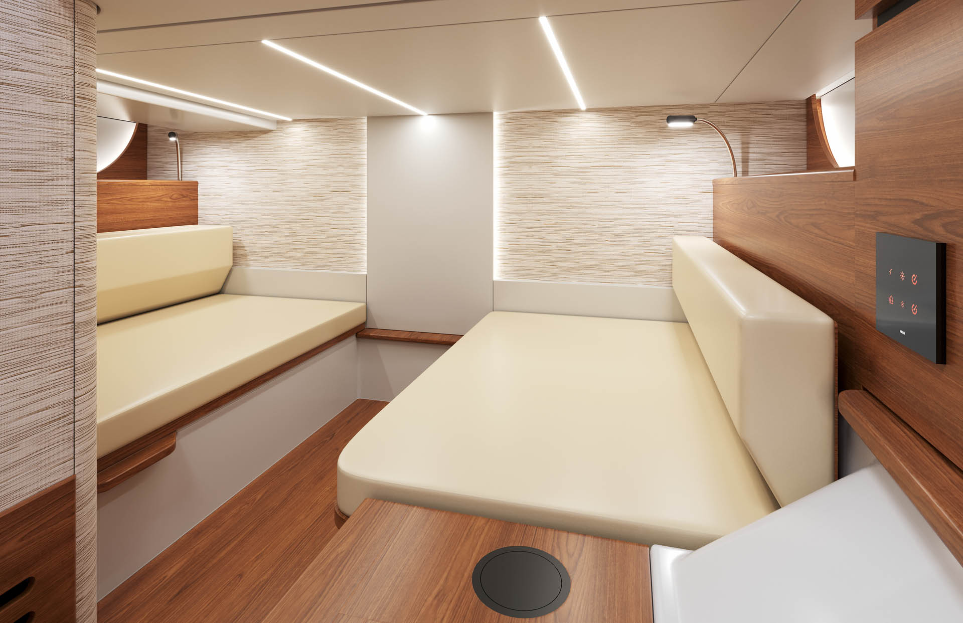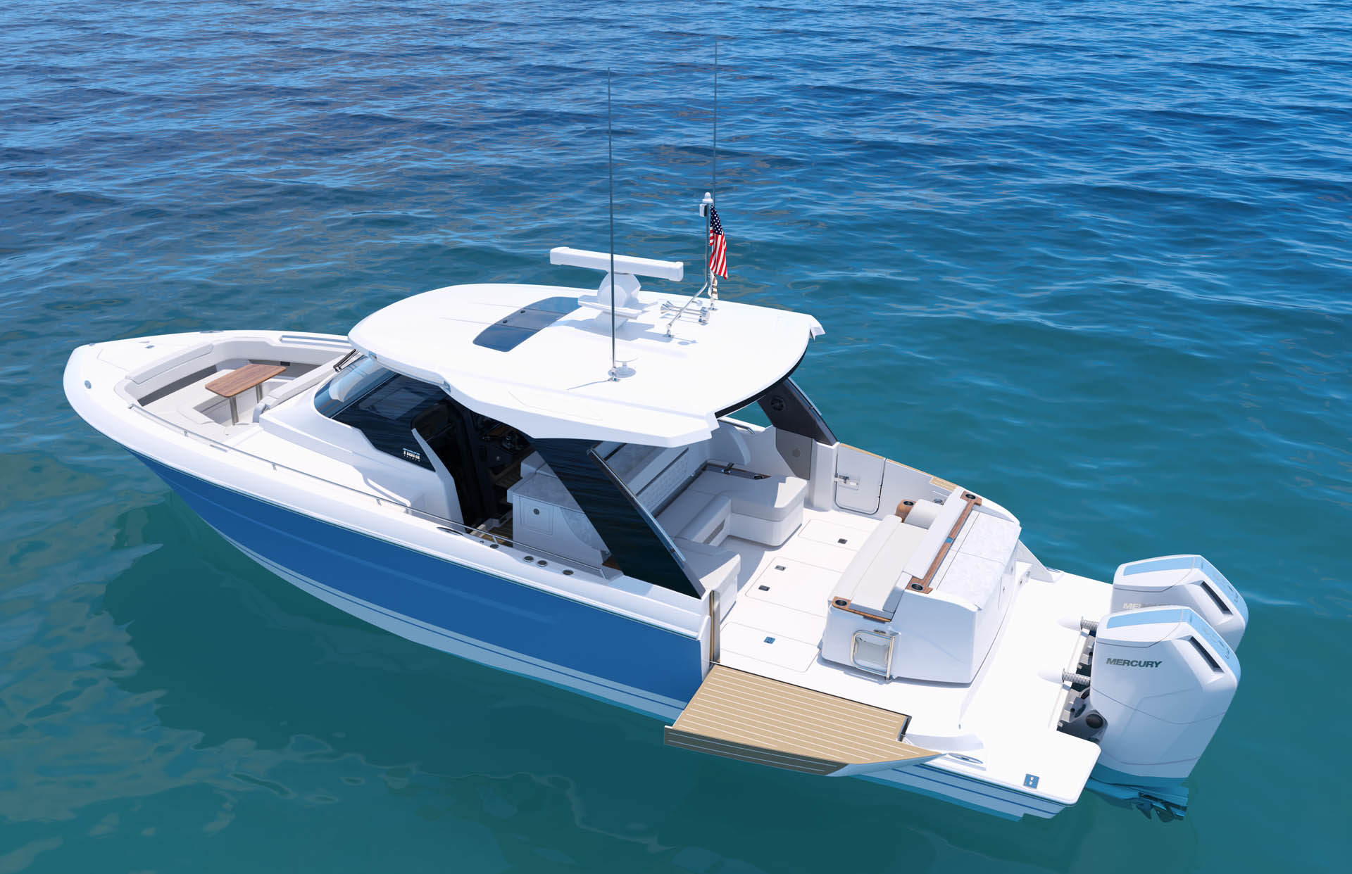 Luxury sport yachting is reinvigorated aboard the versatile 39 LS. Walk around capabilities lead you to multiple social zones from bow to stern. Forward, wrap-around seating converts to a large sunpad, while aft, owners get their choice of rotating lounge seating and storage or an option for adventure with a module focused on fishing.